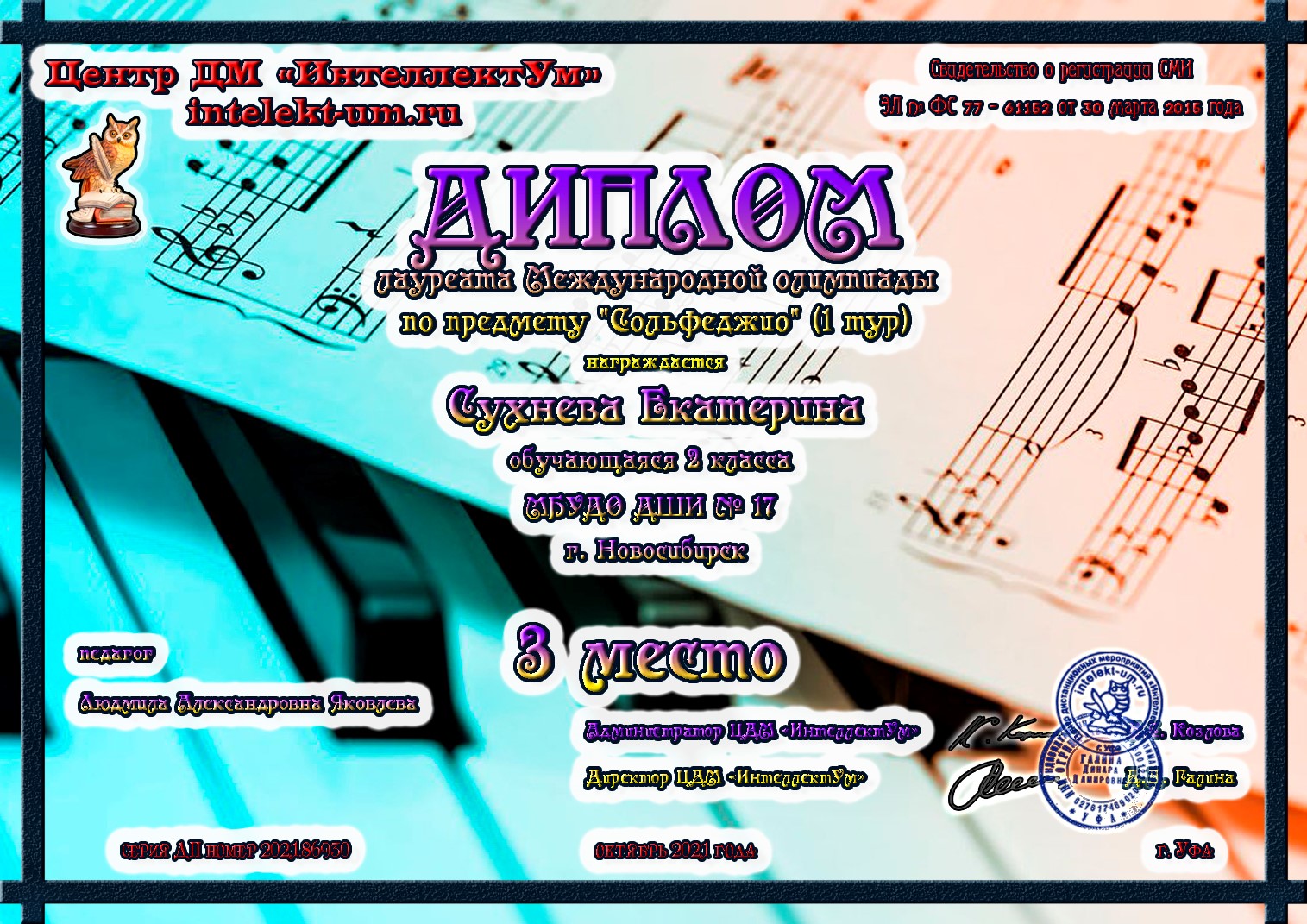 Международная олимпиада по предмету "Сольфеджио"